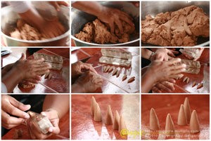 จากนั้นก็เปิดแม่พิมพ์ หยิบออกมา หน้าตาอย่างที่เห็น แล้วไปตากแดดให้แห้ง ถ้าไม่สนใจเรื่องสีสัน ก็เป็นอันสำเร็จพร้อมใช้ ... ถ้าจะใส่สีก็คงเอาไปจิ้มถังสีแล้วตากแดดเหมือนการทำธูปหอมนั่นแหละ ... ง่ายเน๊อะ "กำยาน" เนี่ย .. ![]()